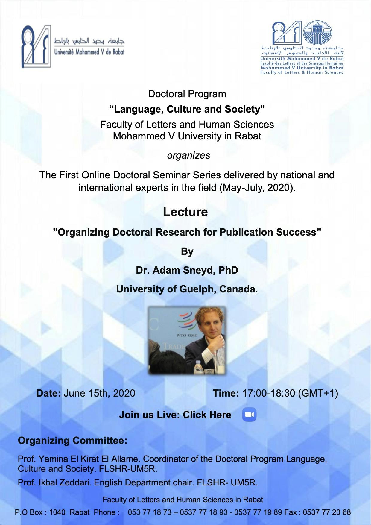 Watch an online lecture that I gave in June 2020 that aimed to help students learn about “Organizing Dissertation Research for Publication Success” at Mohammed V University of Rabat. Slides for the lecture are available – just email me.