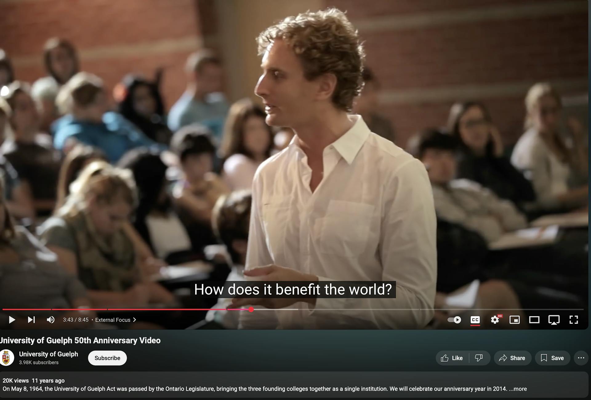 Sneyd in action in the classroom - from the University of Guelph's 50th Anniversary Video https://www.youtube.com/watch?v=zW1Q5iJU6j8